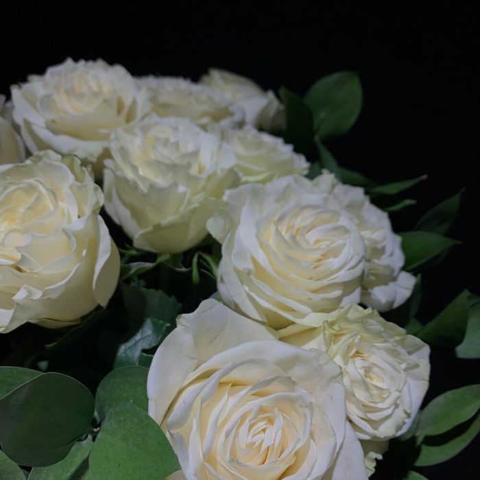 Рускус – 11 шт. розы – 15 шт.