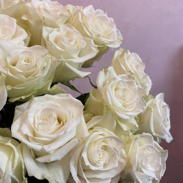 белая одноголовая роза mia star – 15 шт.Атласная лента – 1 шт.