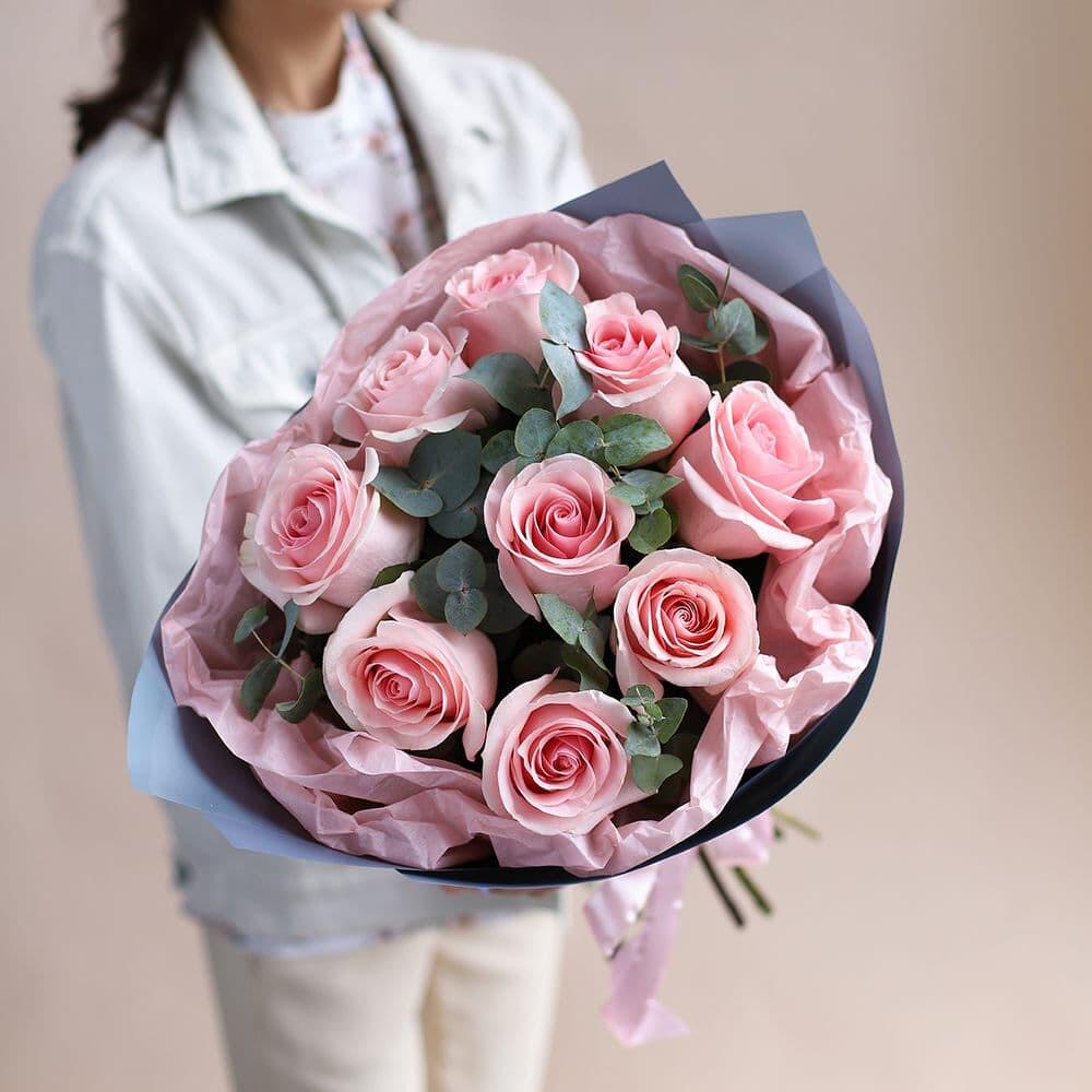 Роза эквадор 50 см – 9 шт.Эвкалипт – 2 шт.
