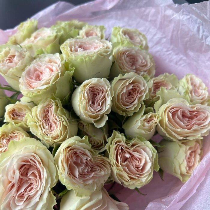 Букет из кустовой пионовидной розы Джульетта и эвкалипт