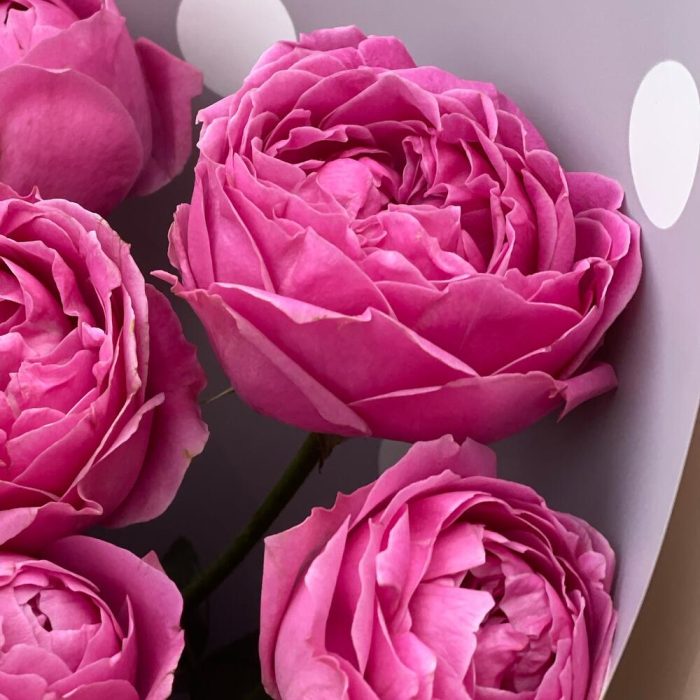 Лента – 1 шт.Упаковка дизайнерская – 1 шт.роза мисти бабл пионовидная – 5 шт.