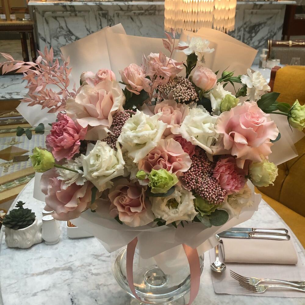 Букет «Французский десерт» (премиальная роза pink ohara)