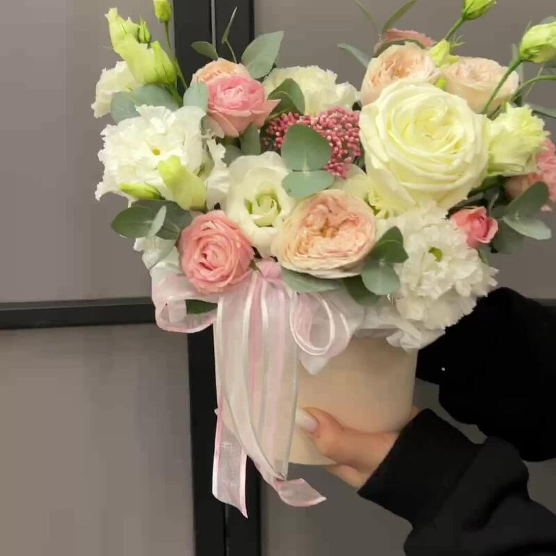 “В твоих глазах”: нежная шляпная коробка с французскими розами