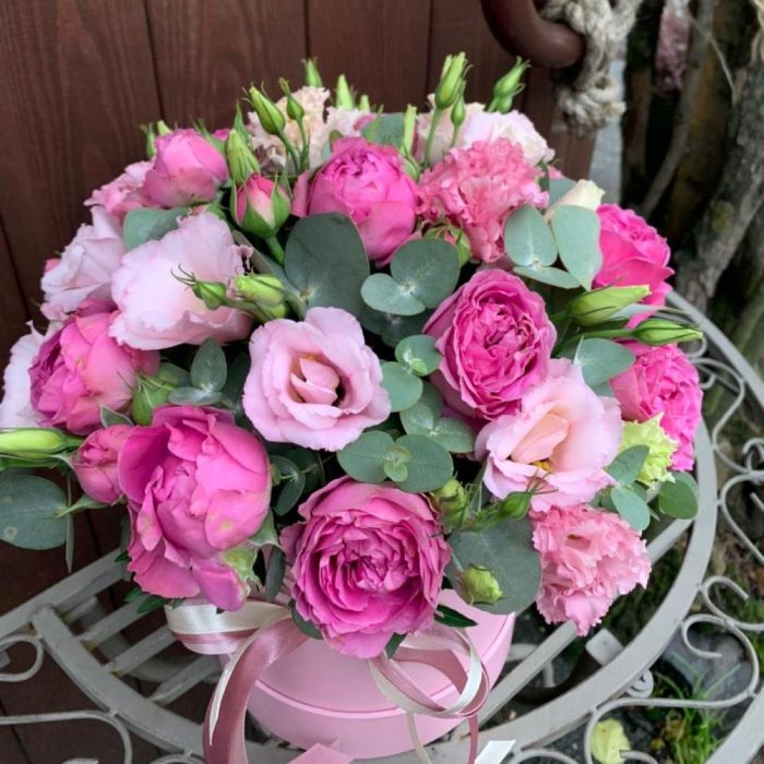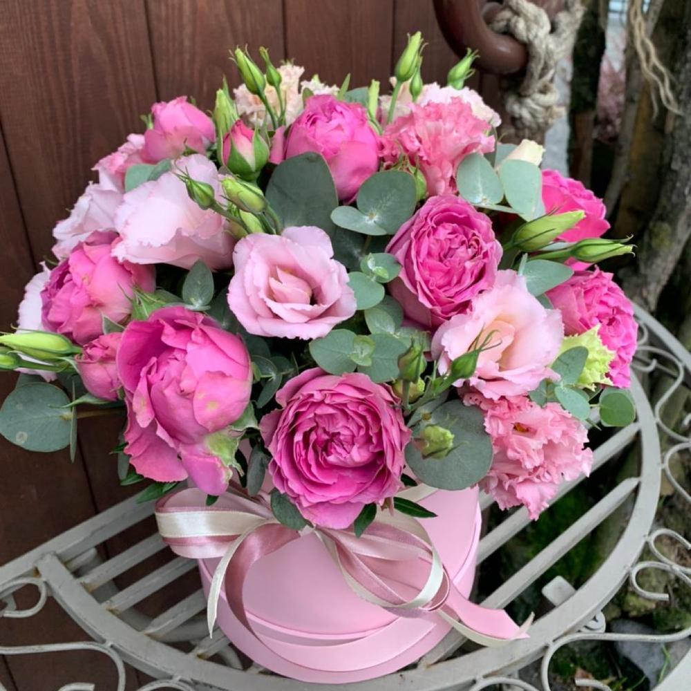Альстромерии, Гвоздики, Кустовые розы, Лизиантусы, Розы, Хризантемы